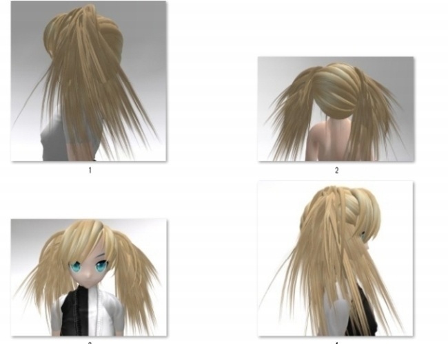 絵心があまりないので3D作成ですがシャギーのはいった金髪ミニツインテールです。こんな髪型でワイルドに攻めたいですね